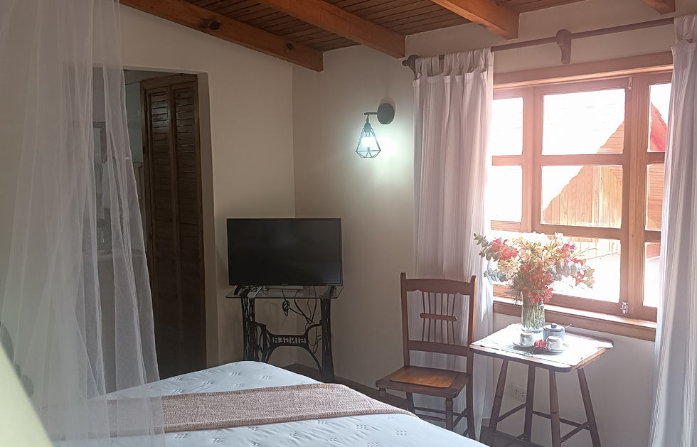 Esta habitación destaca por ser una de las habitaciones más cálidas y acogedoras de la Posada. Ubicada en la parte alta de la casa, pero con acceso exterior independiente, lo que le permite tener un espacio de estacionamiento justo al lado de la habitación.
